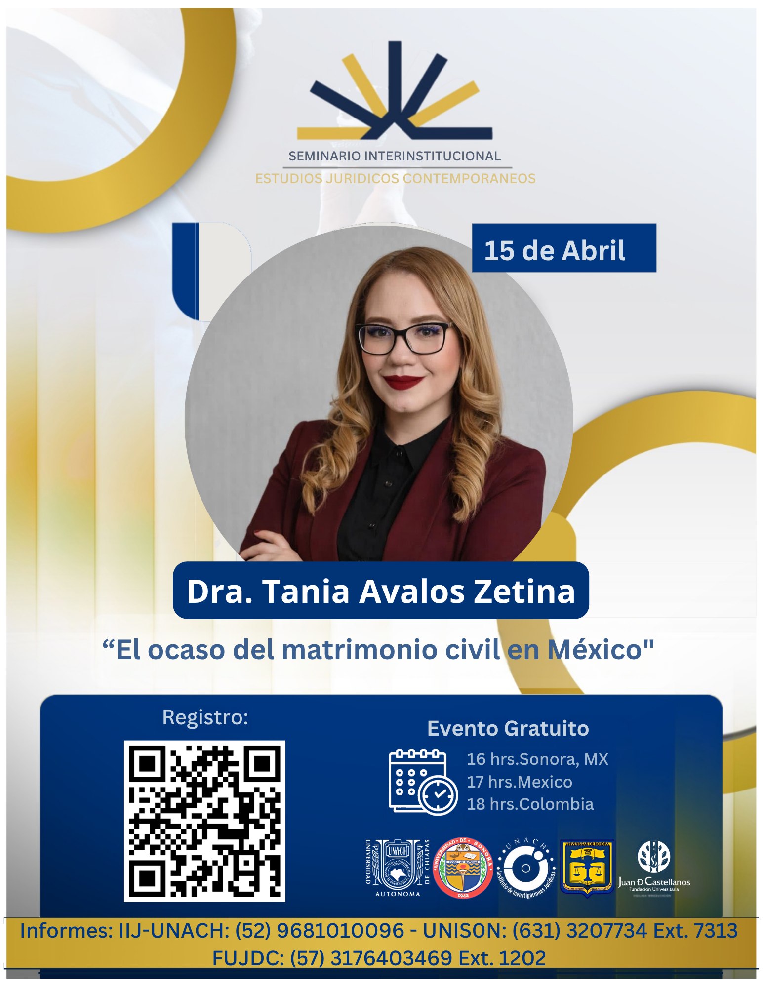 “El ocaso del matrimonio civil en México”, impartida por la Dra. Tania Avalos Zetina.