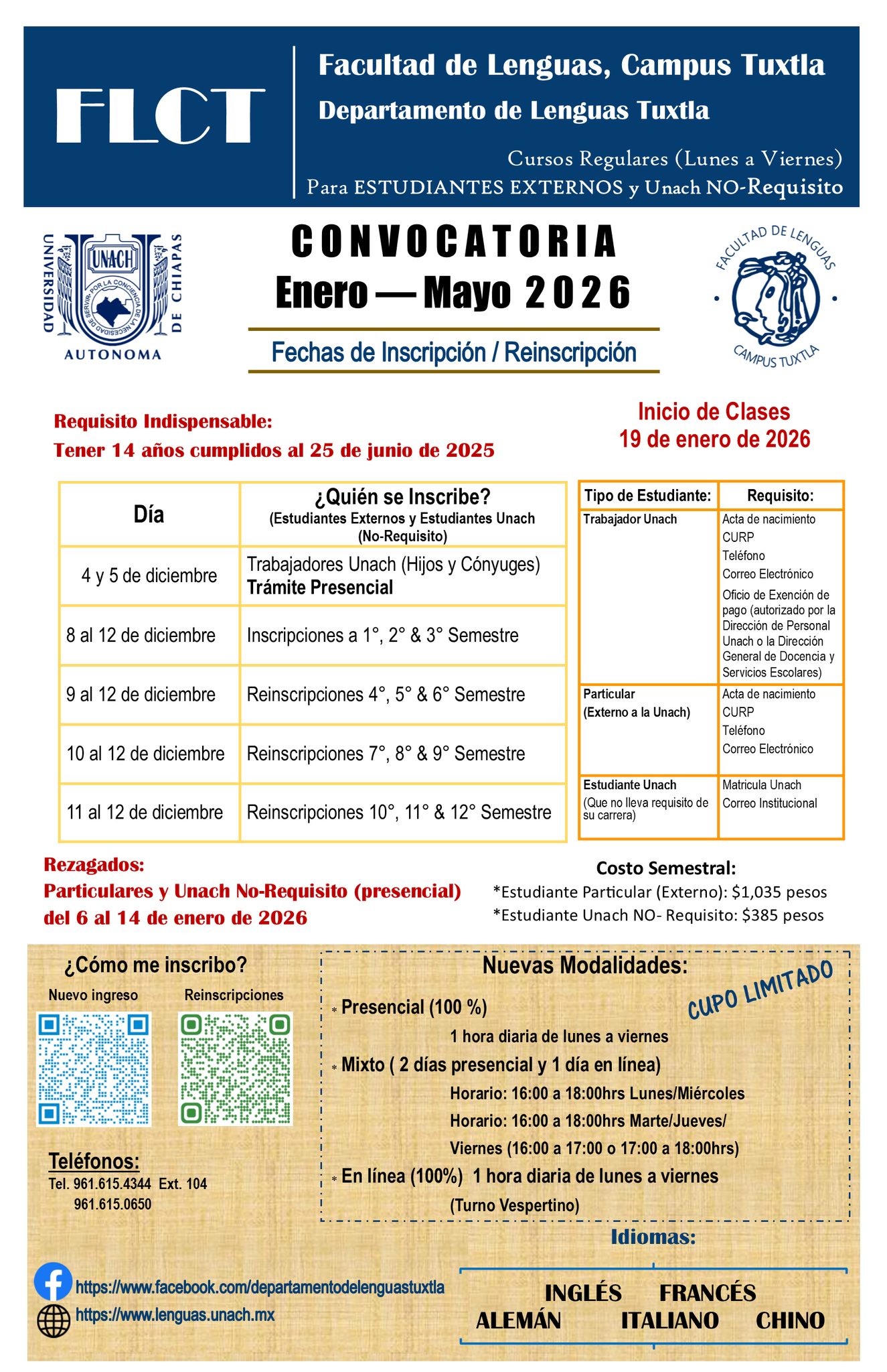 Convocatoria para Cursos Regulares (lunes a viernes).