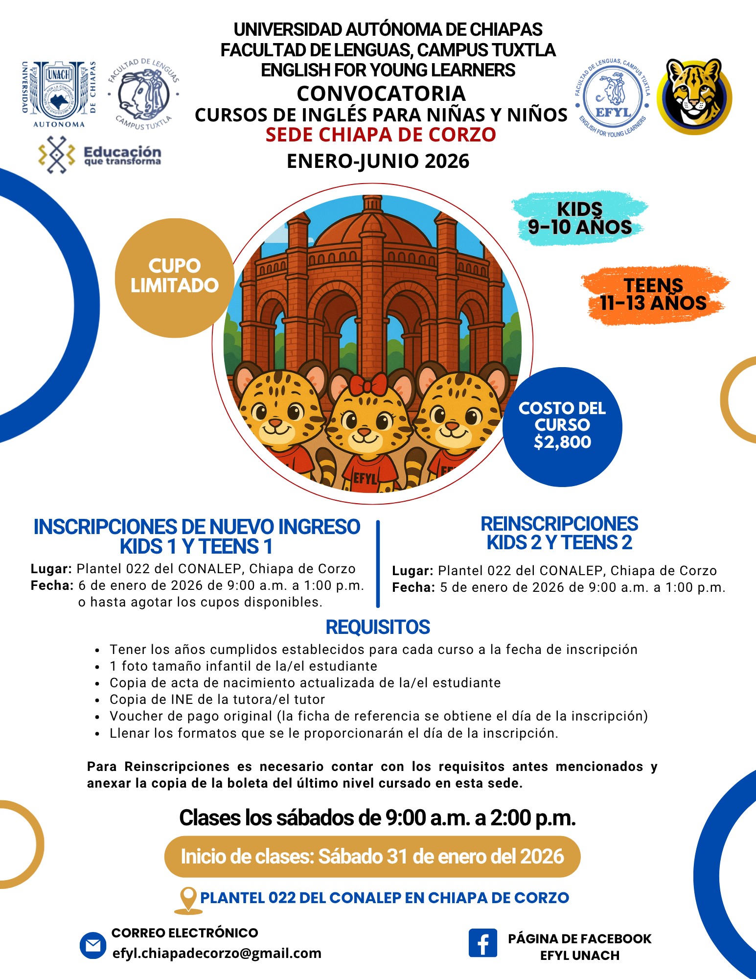 Programa de inglés "English For Young Learners" (EFYL) sedes Berriozábal y Chiapa de Corzo