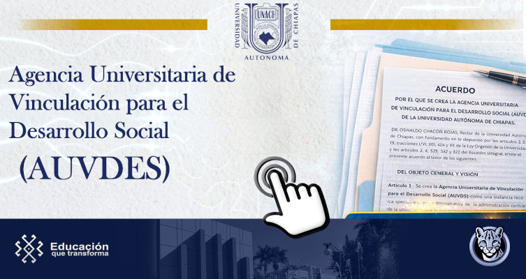 La Agencia Universitaria de Vinculación para el Desarrollo Social (AUVDES) es una instancia estratégica de la Universidad orientada a fortalecer la relación institucional con la sociedad, mediante la articulación de las funciones sustantivas de docencia, investigación y extensión, con el propósito de generar impacto social positivo y contribuir al desarrollo integral de la región.