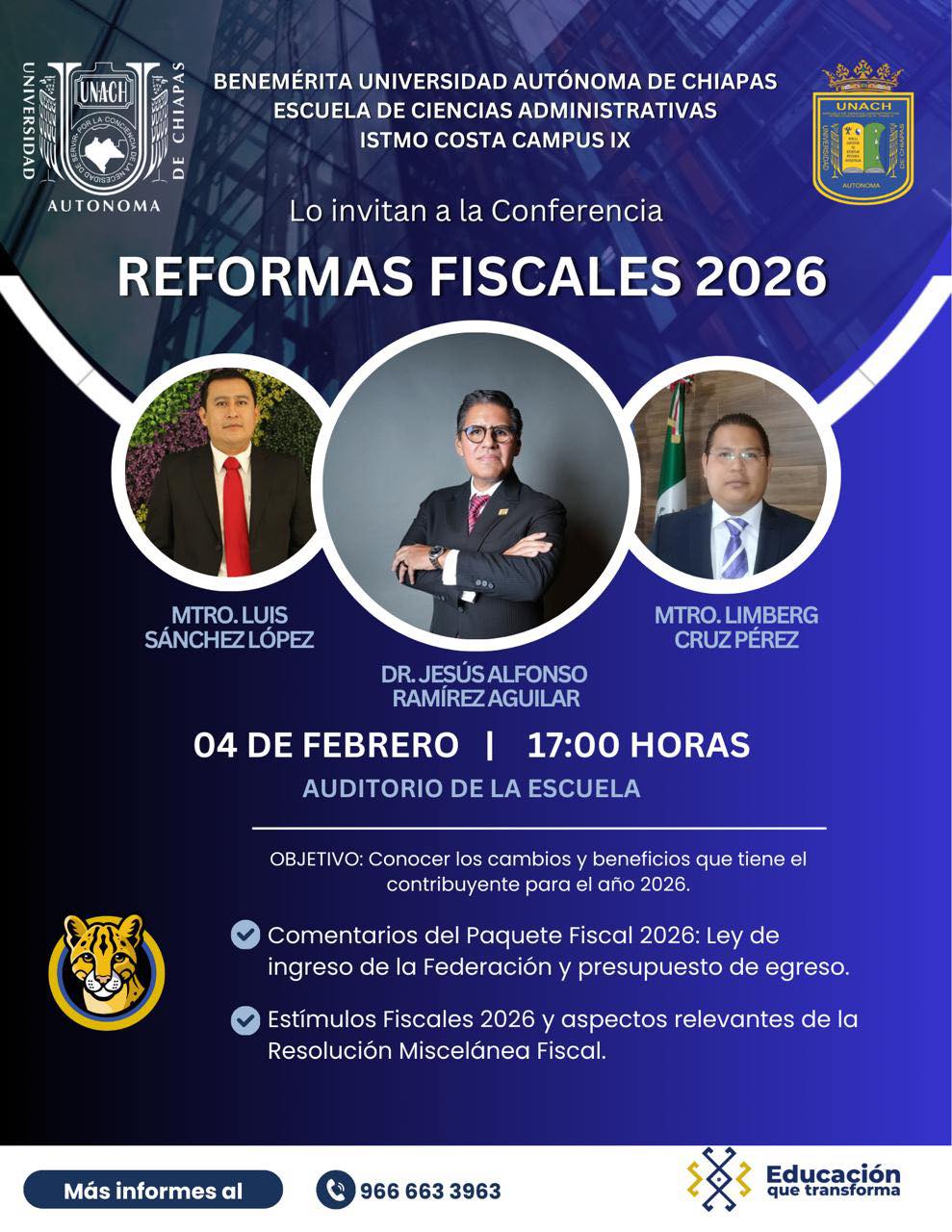 Conferencia “Reformas Fiscales 2026 - Escuela de Ciencias Administrativas Istmo Costa Campus IX Tonalá